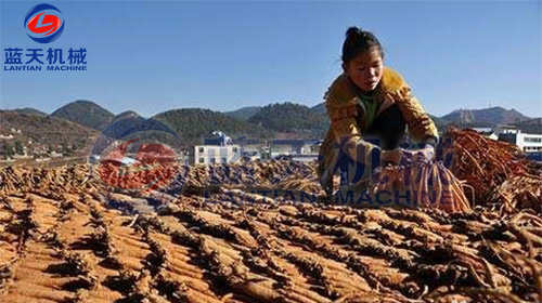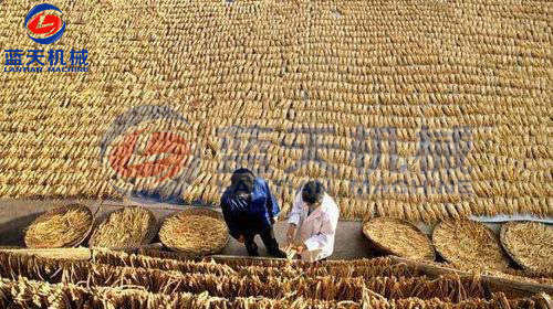 推進(jìn)黨參烘干房內(nèi)進(jìn)行烘制。將搓理條后的黨參、均勻鋪放于竹簾內(nèi),分層擺放,蘆頭部分蓋前排的尾須部分,呈覆瓦狀,以便頭尾干燥均勻,保持40-50攝氏度進(jìn)行烘干。