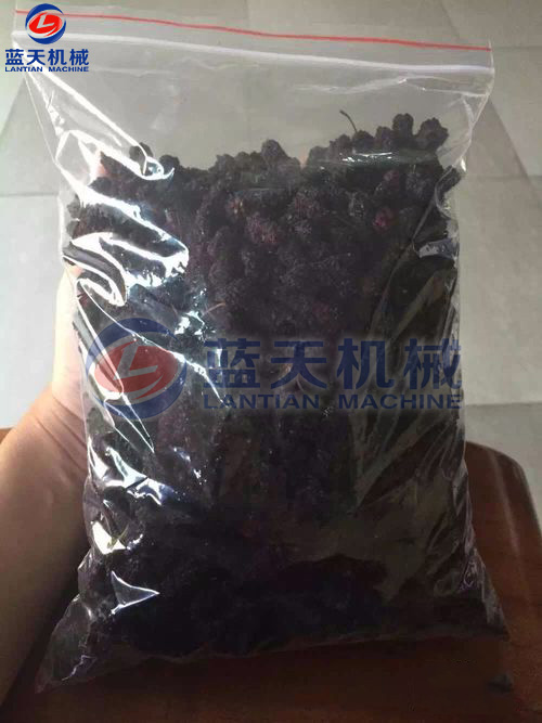 干果處理:干燥后的桑葚干要進一步篩選,可用風車、篩子或自然風力去掉果柄、干葉和癟粒等雜質。然后按色澤飽滿度及酸甜度進行人工分級、選用食品袋、真空包裝袋包裝、貯藏、銷售,最后到消費者手里就是好酒一壺,好茶一杯了。