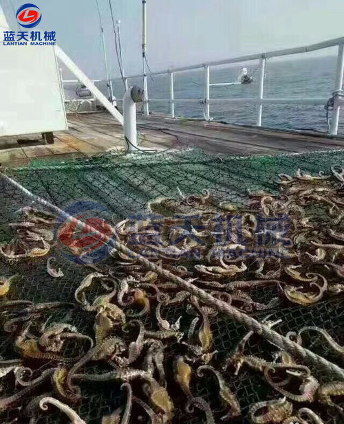 海馬在人工養(yǎng)殖條件下,4個(gè)月左右即可達(dá)到商品規(guī)格??稍?~9月分產(chǎn)量最高時(shí)采收,或者在越冬之前采收,也可以根據(jù)需要隨時(shí)采收。平時(shí)可以用網(wǎng)兜捕撈,需要量大時(shí),可干水捕捉。采收到的鮮活海馬,如果為短途運(yùn)輸,可以裝在木桶中送到目的地;如為遠(yuǎn)途,可把海馬裝在氧氣袋中運(yùn)輸,到目的地后,仍可保持新鮮狀態(tài)。