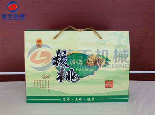 在干燥、衛生的室內,將涼下來的沾糖核桃仁裝入鋁箔復合袋。用真空包裝機封口或充氮包裝,即為成品。
