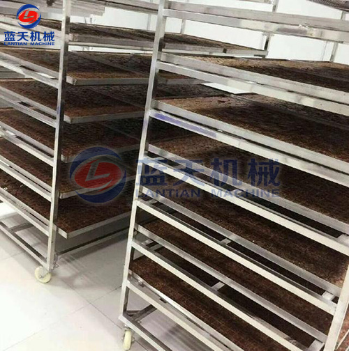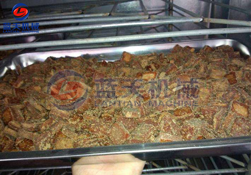 紅糖烘干工藝:將紅糖磚切成方塊狀,置入托盤中,在物料架中分層放好,注意層與層之間的距離,將物料車推入烘干房,開始啟動(dòng)溫濕控制系統(tǒng),在紅糖烘干機(jī)的使用過程中,第一個(gè)小時(shí)可以只升溫不排濕,因?yàn)樵诠ぷ鞯牡谝浑A段,烘干房里面的濕度很低。第二階段設(shè)定為烘干加排濕的工作程序模式。紅糖烘干機(jī)帶有余熱回收功能。在排濕過程中的熱量會(huì)重新參與到烘干房的熱循環(huán)。排濕過程當(dāng)中不會(huì)造成熱量浪費(fèi),從而降低了運(yùn)行成本。