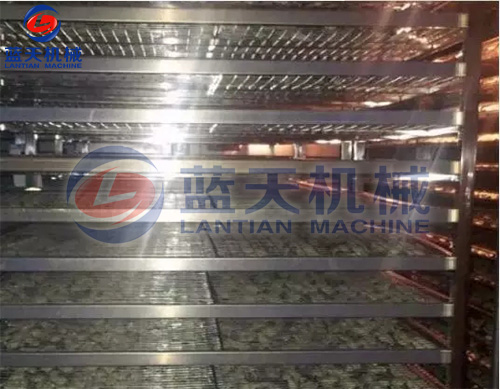 2剝好的陳皮由車間工人集中運至裝料區,由裝料工人開始裝入物料托盤,上物料架,馬上要準備大批量烘干咯。