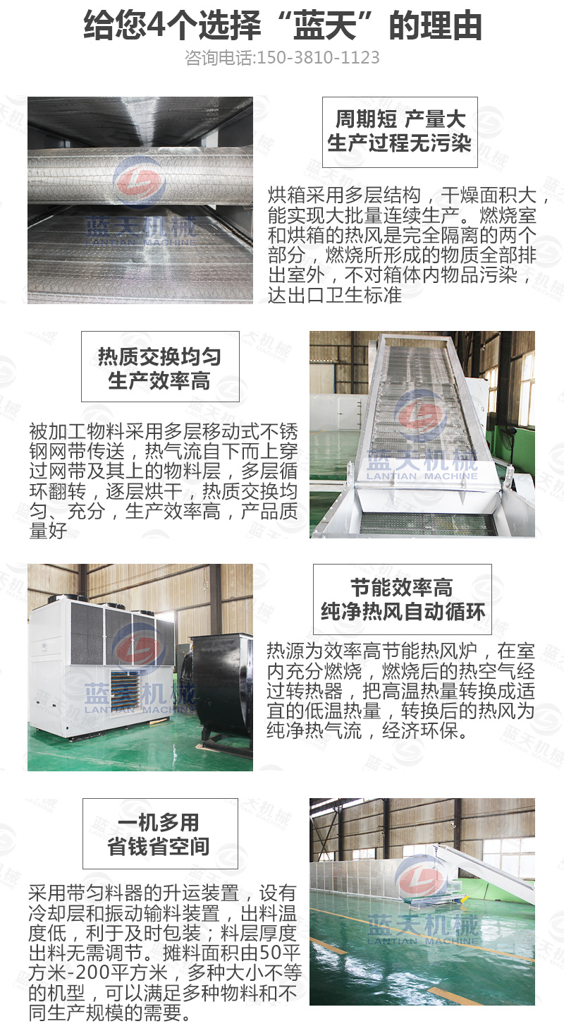 不同的廠家自身的實力、烘干工藝、烘干水平、技術要求等不同,生產出來的烘干設備機械在效率上,構造上都是不一樣的,所以烘干效率和速度也是千差萬別,所以說不同廠家、相同的烘干設備即外觀相同,但產量還是有相當大的差距的。烘干設備的溫控及智能化操作確保省時省力省人工。