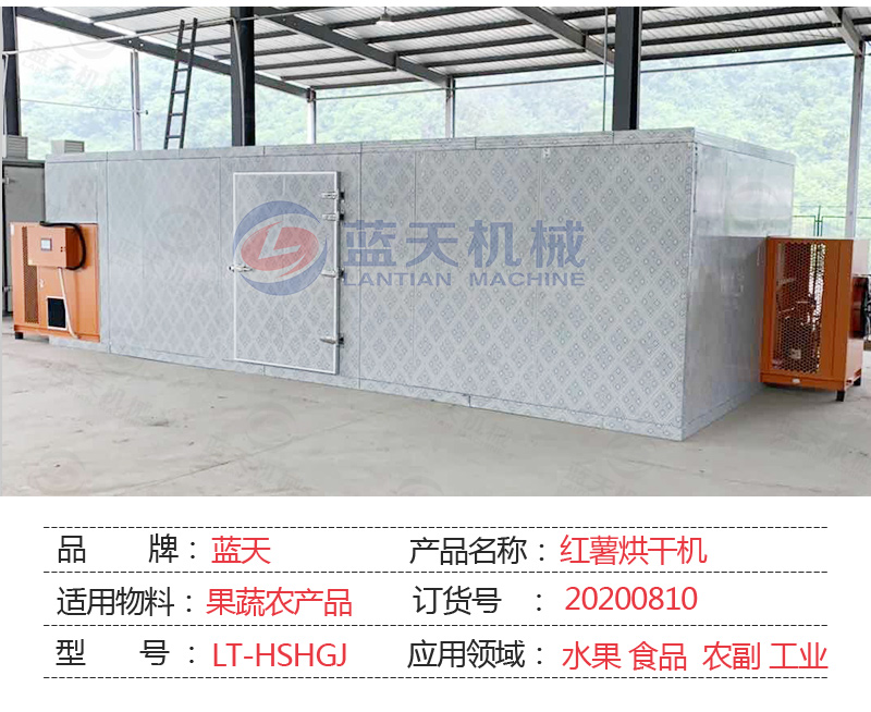 干燥烘干地瓜。干燥烘干地瓜有兩種辦法,一種是通過日曬的辦法,一般不下雨的情況下,在陽光下曬4-5天即可,要定時翻轉。另一種辦法是利用地瓜干烘干設備進行烘干地瓜,這種辦法適合量大,且不受天氣影響。開啟地瓜干烘干設備。將已經擺好托盤的地瓜推進去地瓜干烘干機內,關閉房門。通過智能控制面板,設置好溫度和濕度,一般設置為四個階段,一階段設定45℃,定時2~3小時。二階段溫度設定50℃,定時3小時。三階段溫度設定60℃,定時3小時。四階段溫度設定70℃,定時3小時。一般用時12個小時即可。