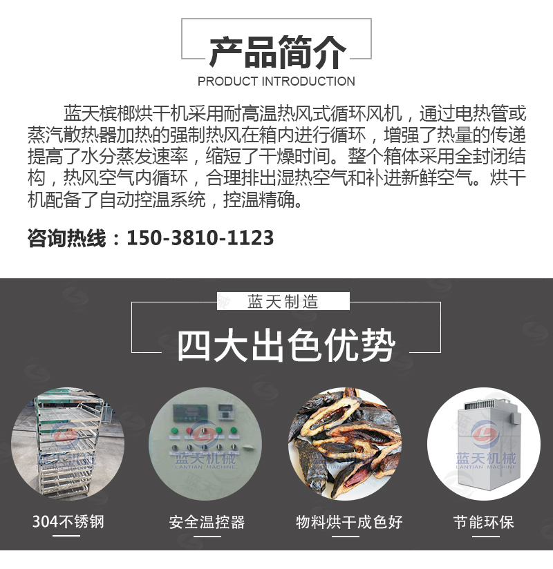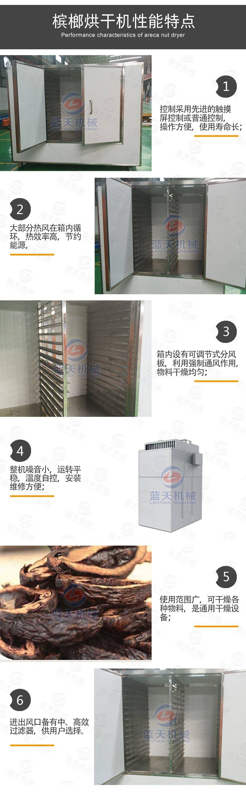 4、檳榔烘干機烘干過程可靠,烘干過程無過熱或者燃燒危險。