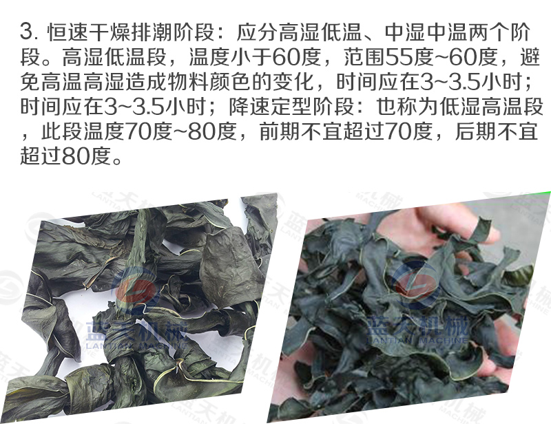 3、烘干時間—海帶烘干一般周期比較長,快速烘干一般都會破壞烘干質(zhì)量;
