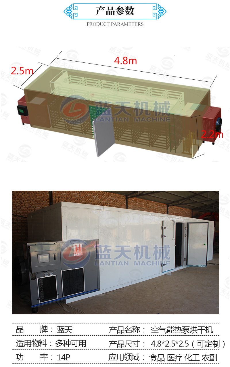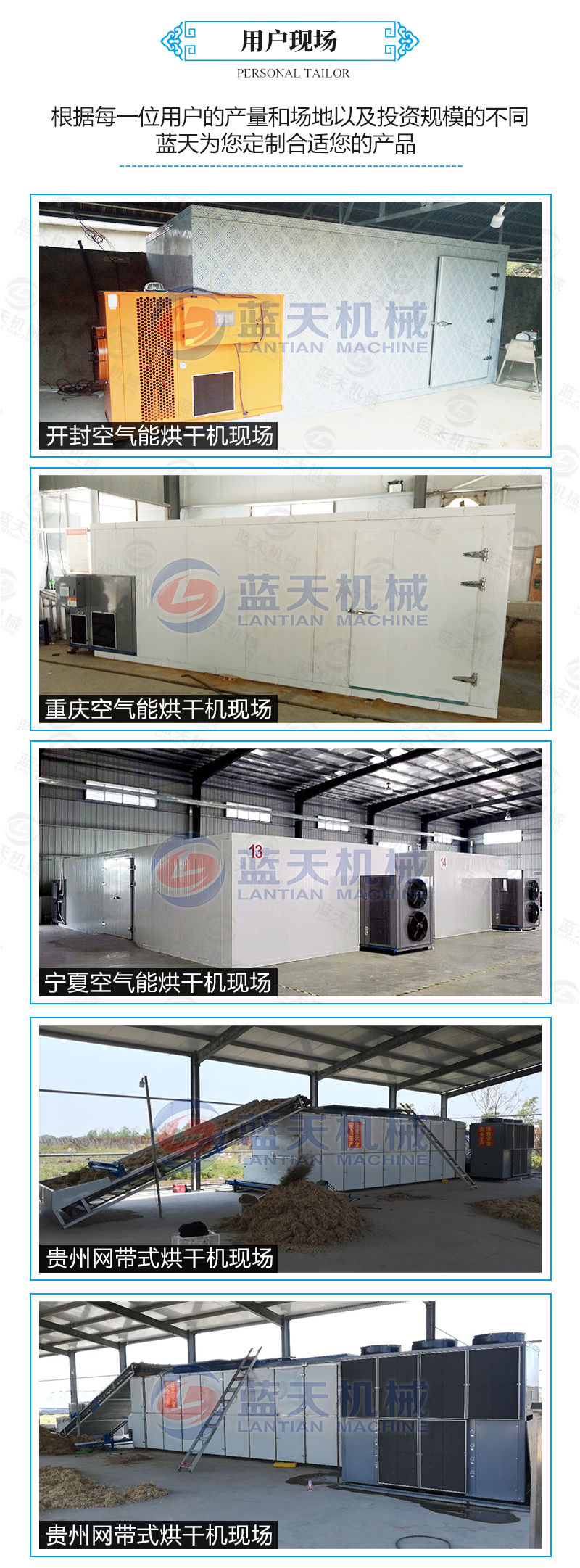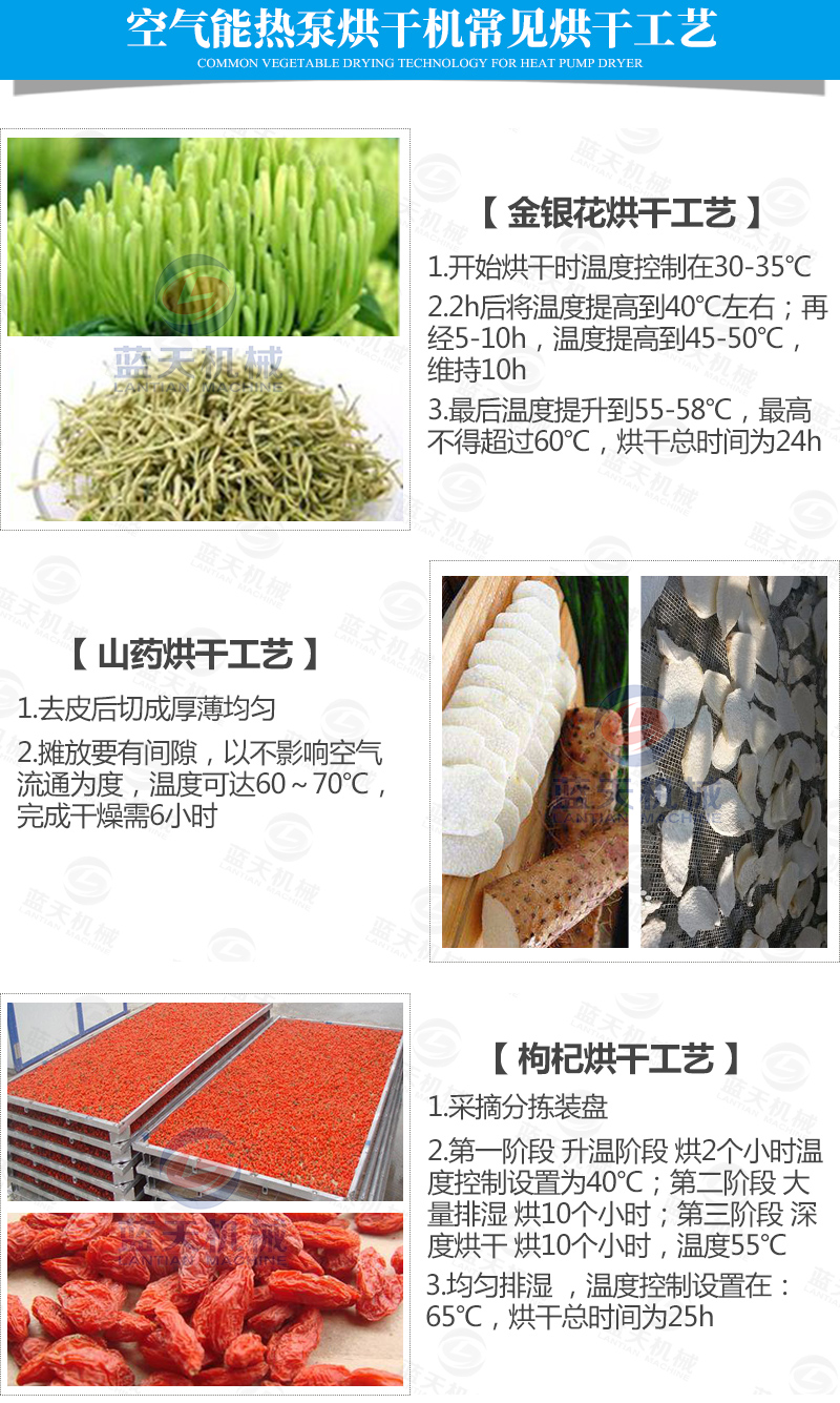 空氣能熱泵烘干機溫度范圍在15℃-80℃,烘干溫度45℃-65℃區間省電,只要15℃-80℃溫度區間物料都是可以烘干,合適烘干的物料主要有各種藥材、水果,蔬菜、海鮮、食品(臘腸臘肉、面條、掛面等)、農產品、鮮花、茶葉、木材、工業品(石膏、木炭、印刷)、污泥等等。