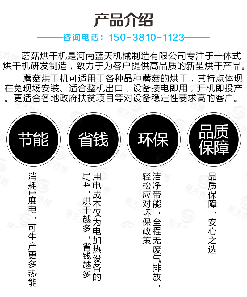 (3)烘干質(zhì)量好——蘑菇烘干機(jī)裝置中的干燥介質(zhì)是在封閉的空間循環(huán);不受外界氣候條件的影響,一年四季在同一條件下運(yùn)行,所以烘干干燥的質(zhì)量非常良好。